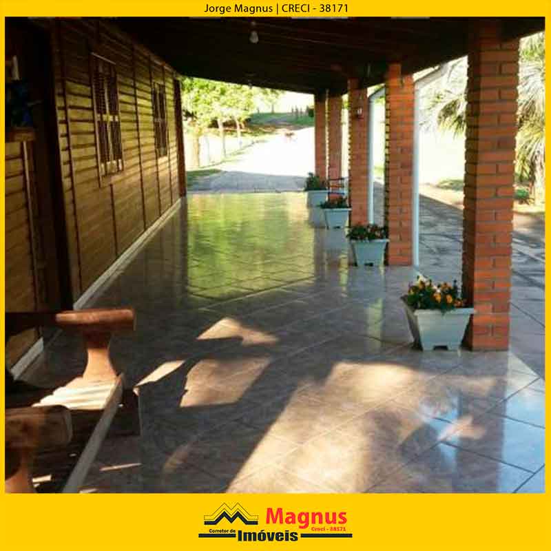 O sítio conta com uma área de terras de 28.000 metros quadrados, casa que serve como galpão de 40 metros quadrados e uma casa de ipê com grapia de 450 metros quadrados. Possui 3 quartos sendo um suíte, cozinha, sala de estar e jantar, mais 2 banheiros sociais. Peça com câmara fria, refrigeração de hortifrúti com escritório. Sala de festas, calefação. Potreiro para criar ovelhas e canil para 5 cachorros.