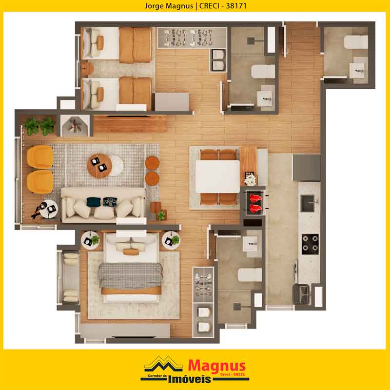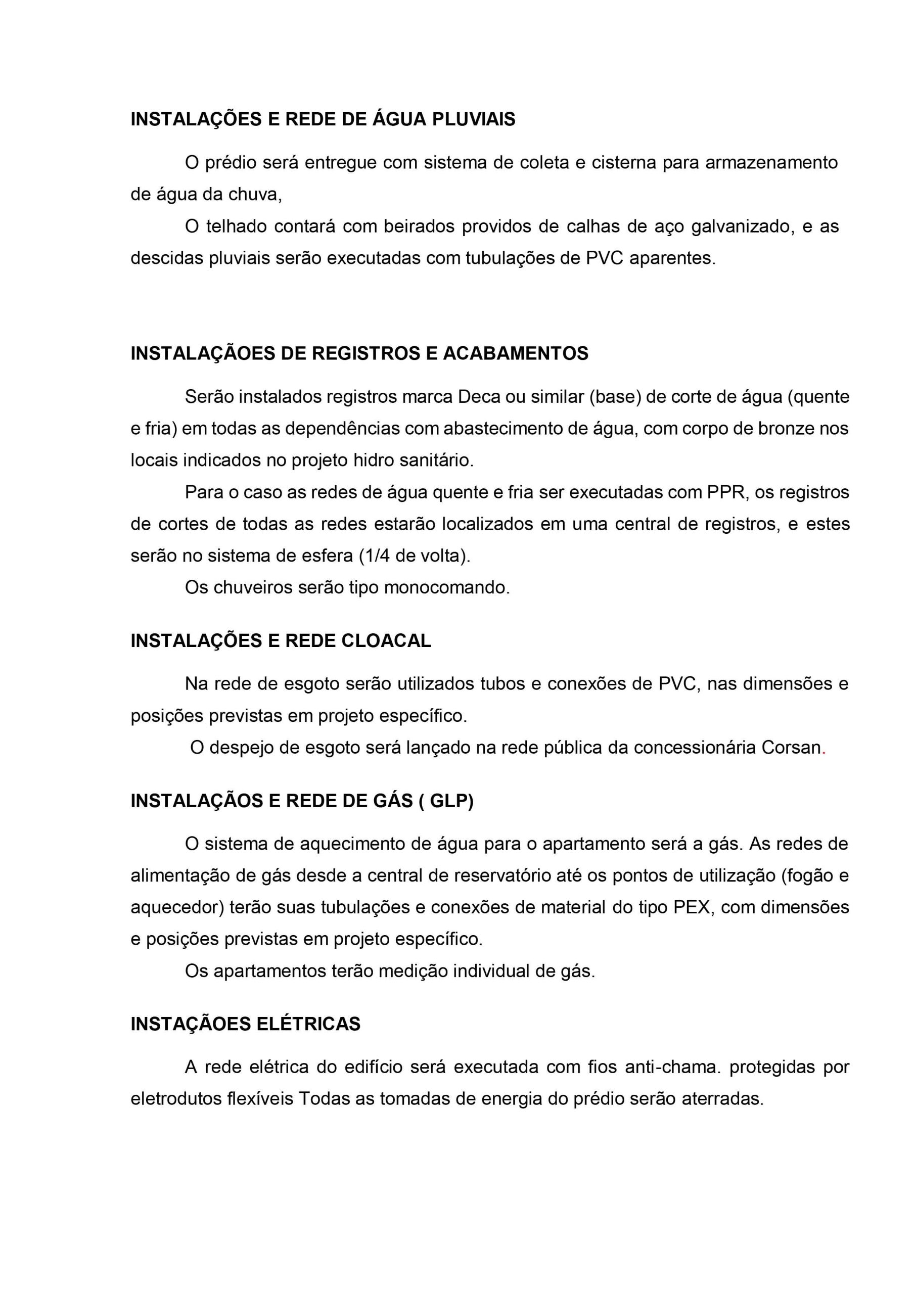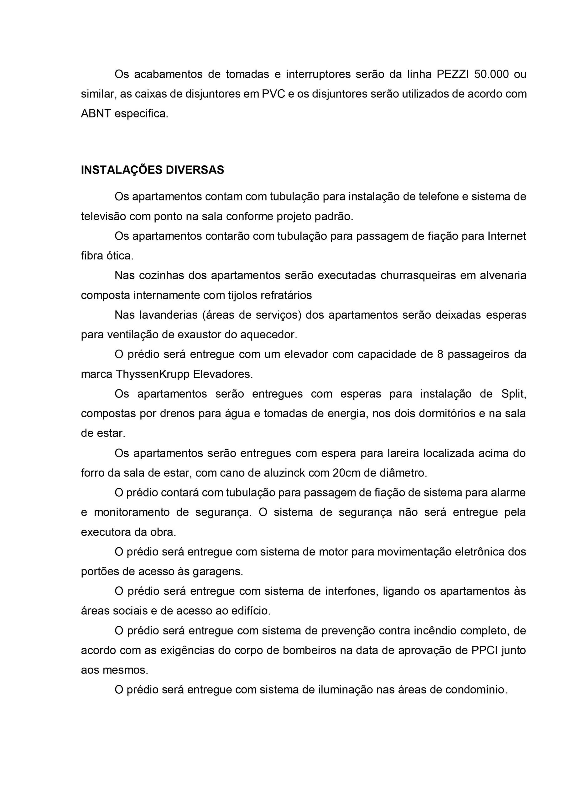 Os apartamentos contam com acabamentos de alto padrão, espera para lareira e Split, churrasqueira em alvenaria, tubulação para internet de fibra óptica e muito mais. O edifício possui elevador ThyssenKrupp, sistema de interfone, portões eletrônicos e iluminação nas áreas comuns.